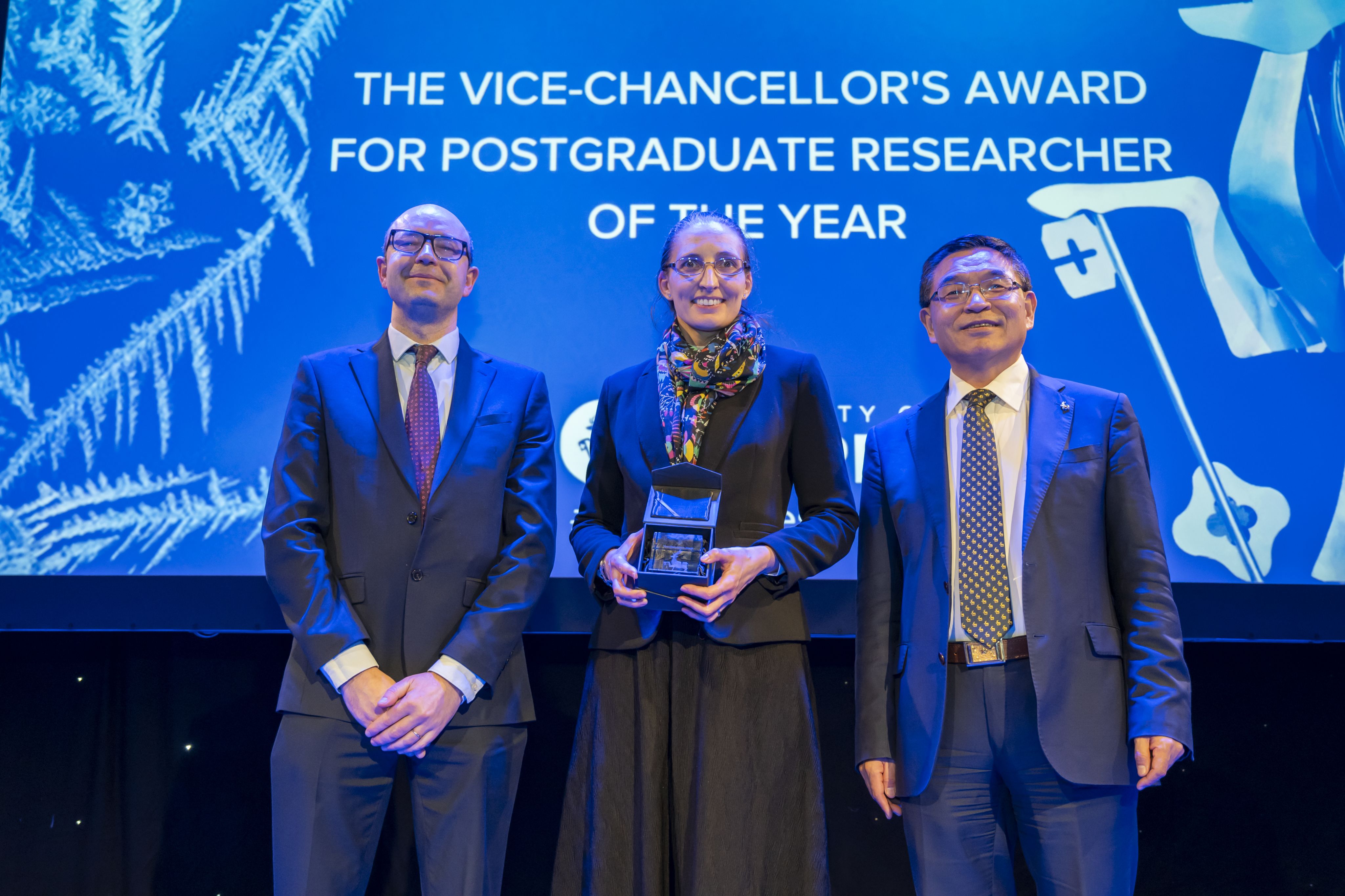 The Vice-Chancellor's Award for Postgraduate Researcher of the Year recognises exceptional postgraduate researchers based on the excellence and breadth of their cumulative research achievements and acknowledging those who are on a rising trajectory, actively contributing to their field and achieving meaningful impact through their work.