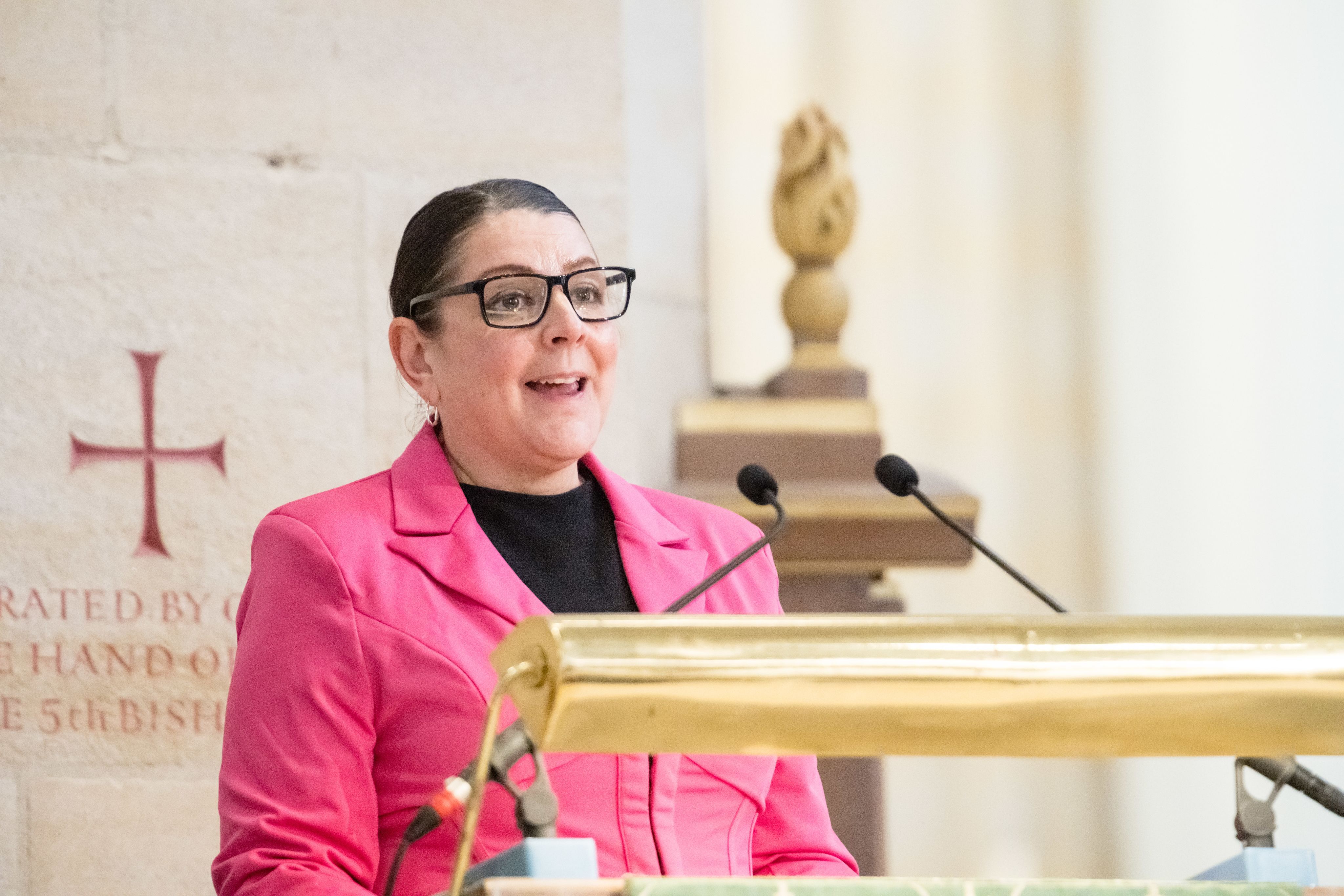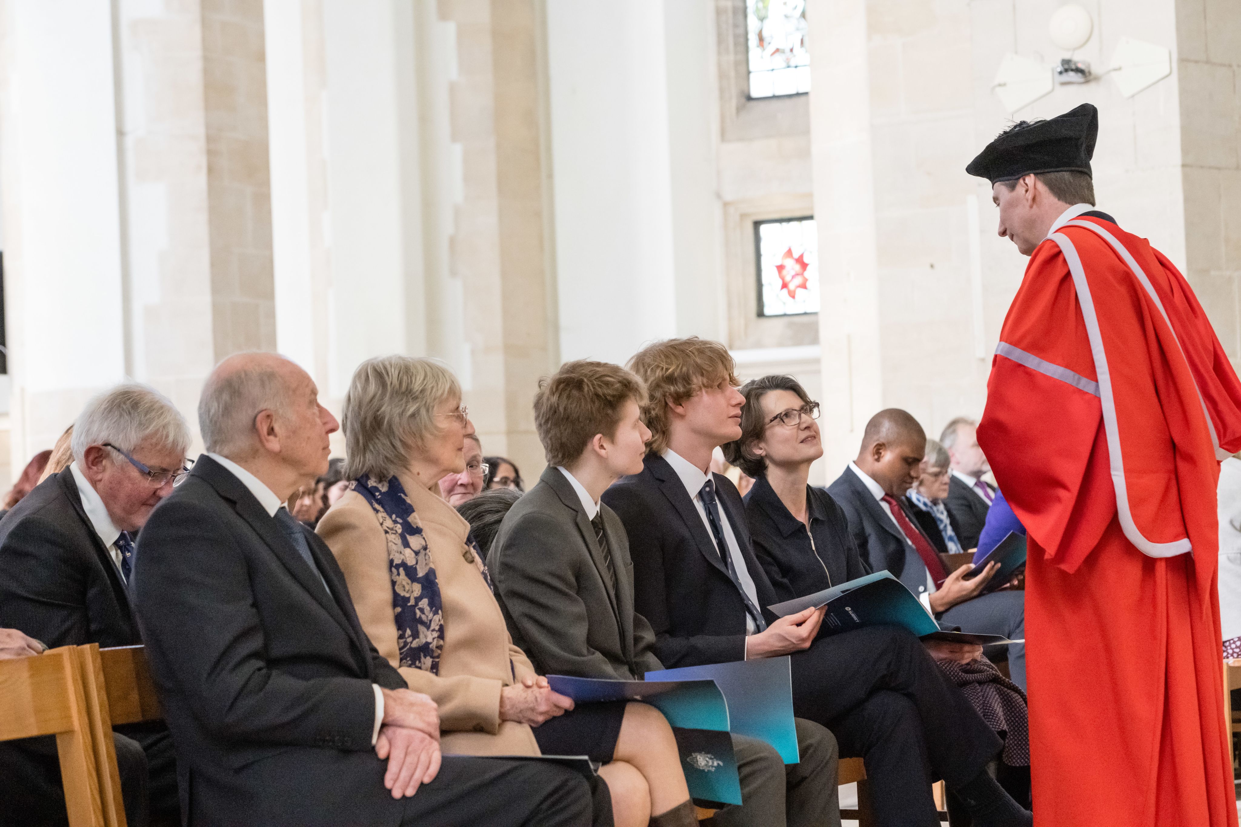 Prof Jarvis speaks with family members seated at the front of the Nave.