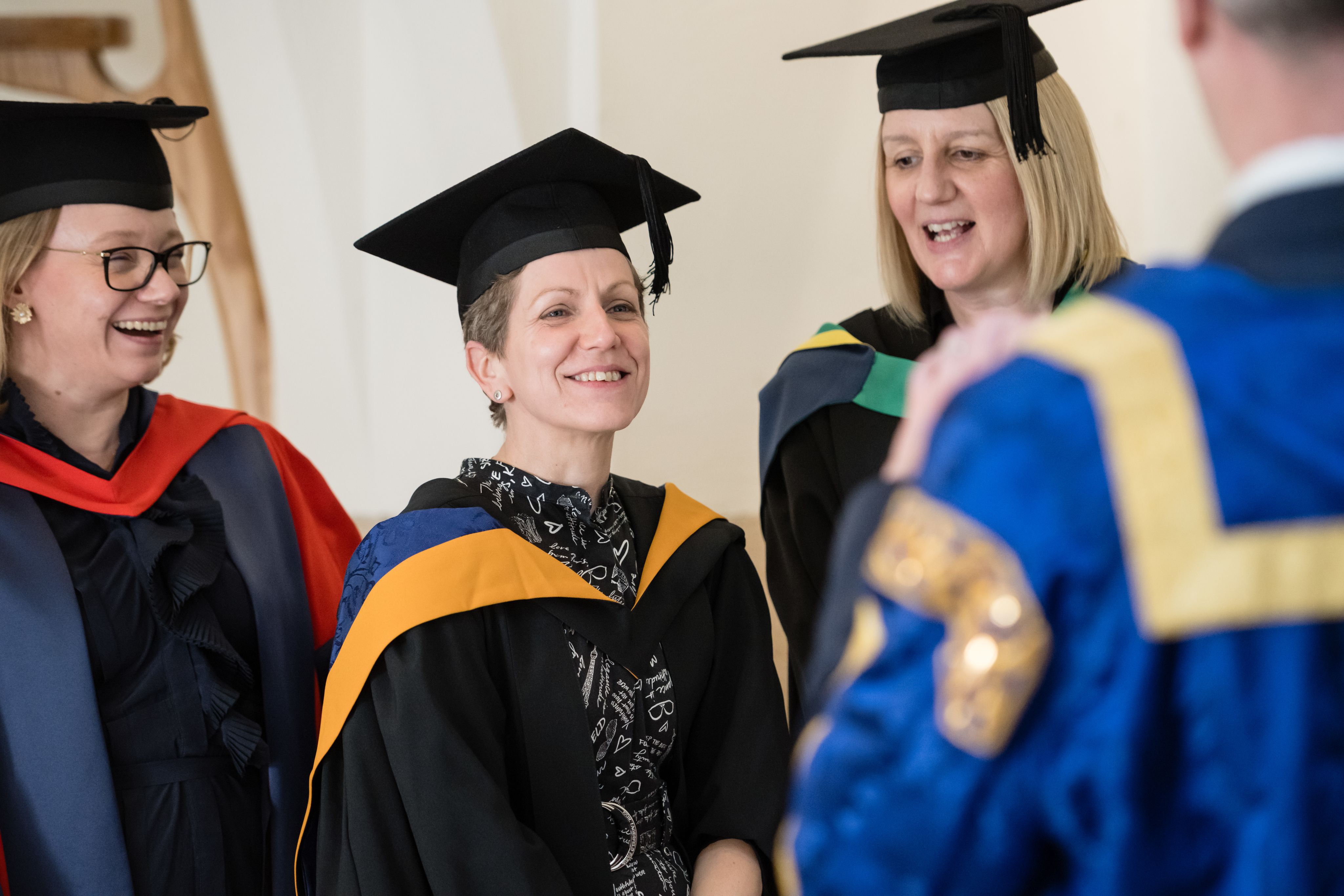 Prof Lisa Collins, Pro-Vice-Chancellor, Research and Innovation; Martine Carter, Vice-President, Strategic Growth; and Emma Rowsell, Chief Student Officer, before the ceremony.