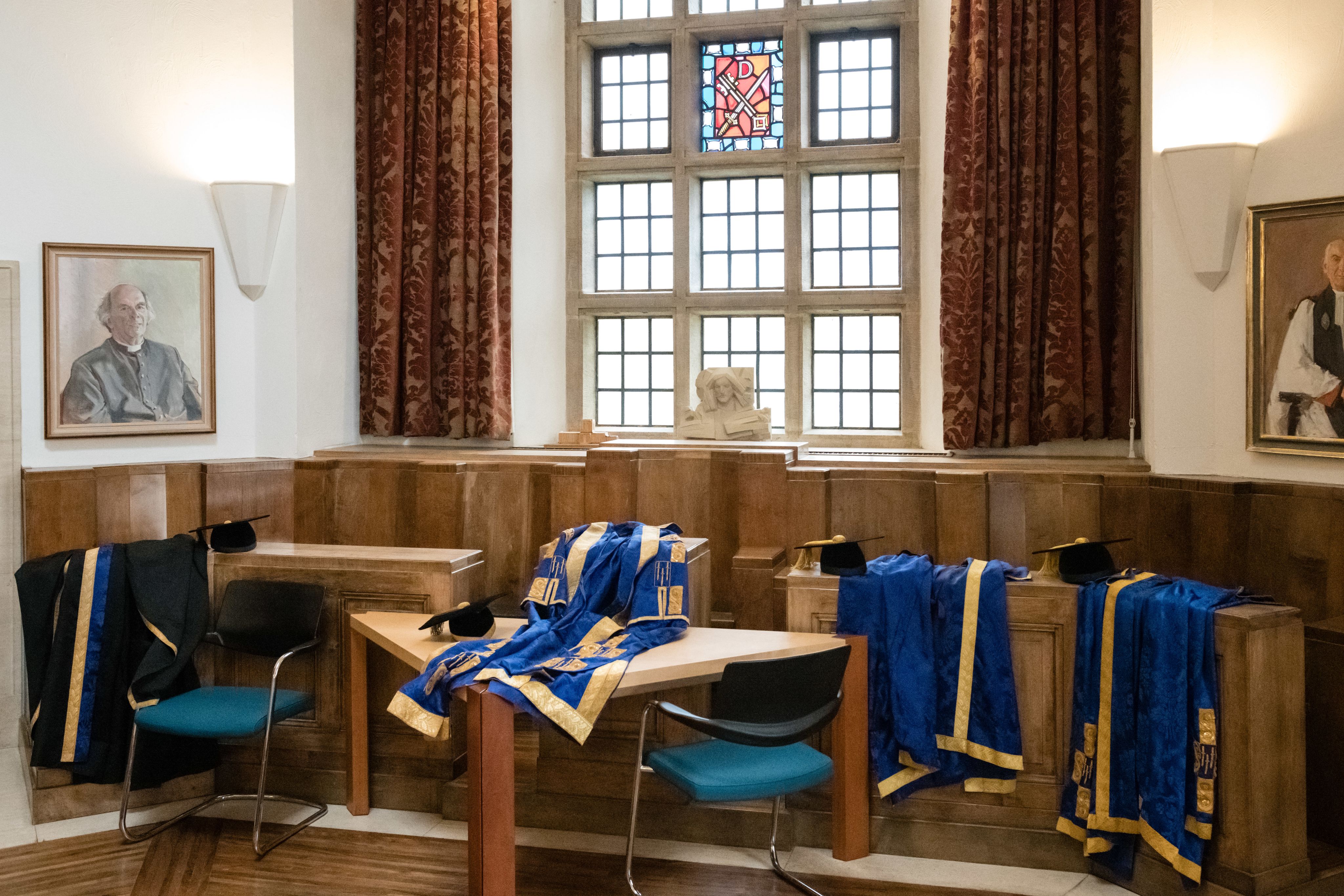 From Lakeside Restaurant, guests made the short walk to Guildford Cathedral for the Installation ceremony. Here the robes of the high officers await in the Chapter House of the cathedral.