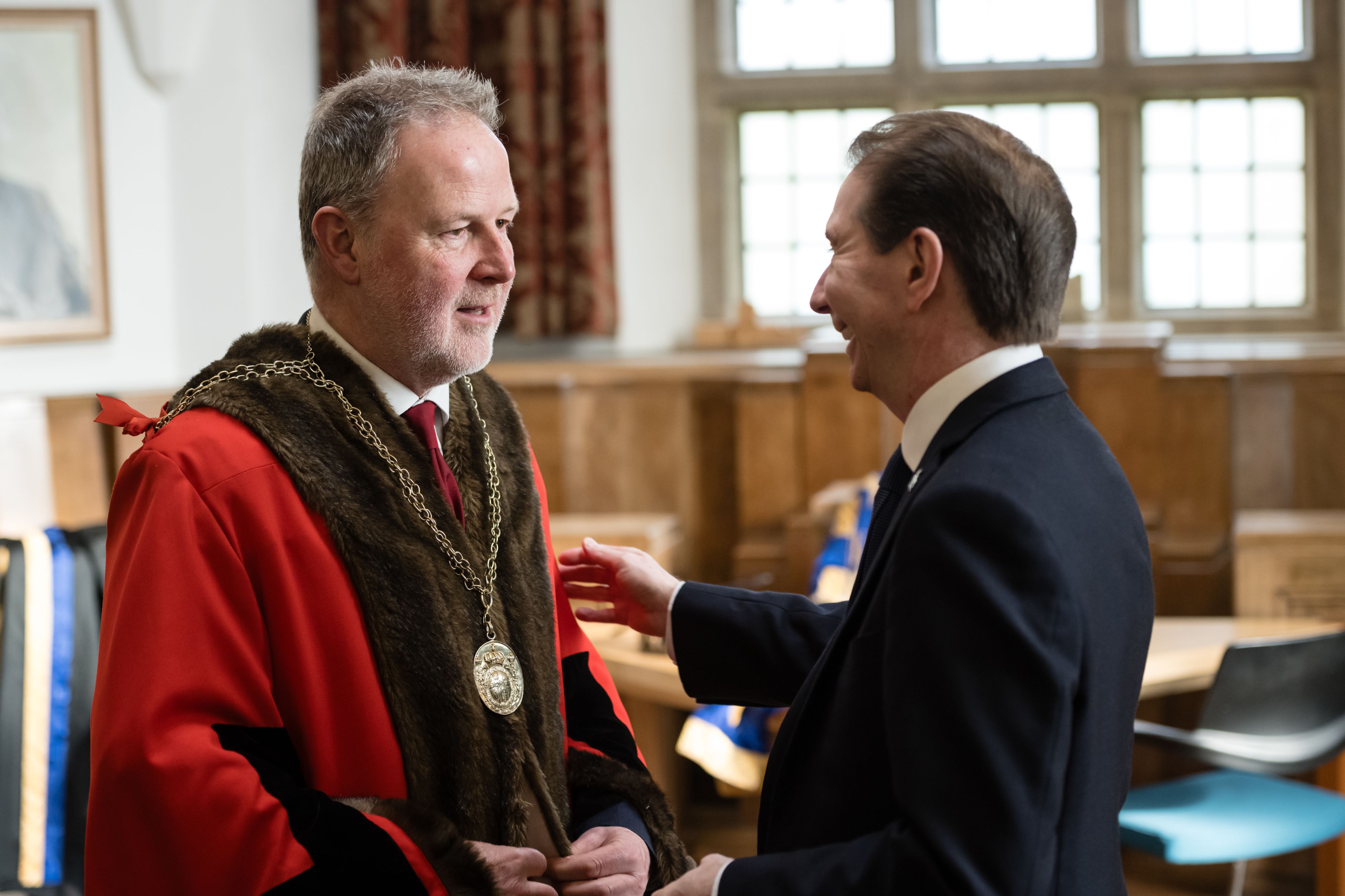 Mayor of Guildford, Councillor Howard Smith, and Prof Jarvis pictured in the Chapter House.