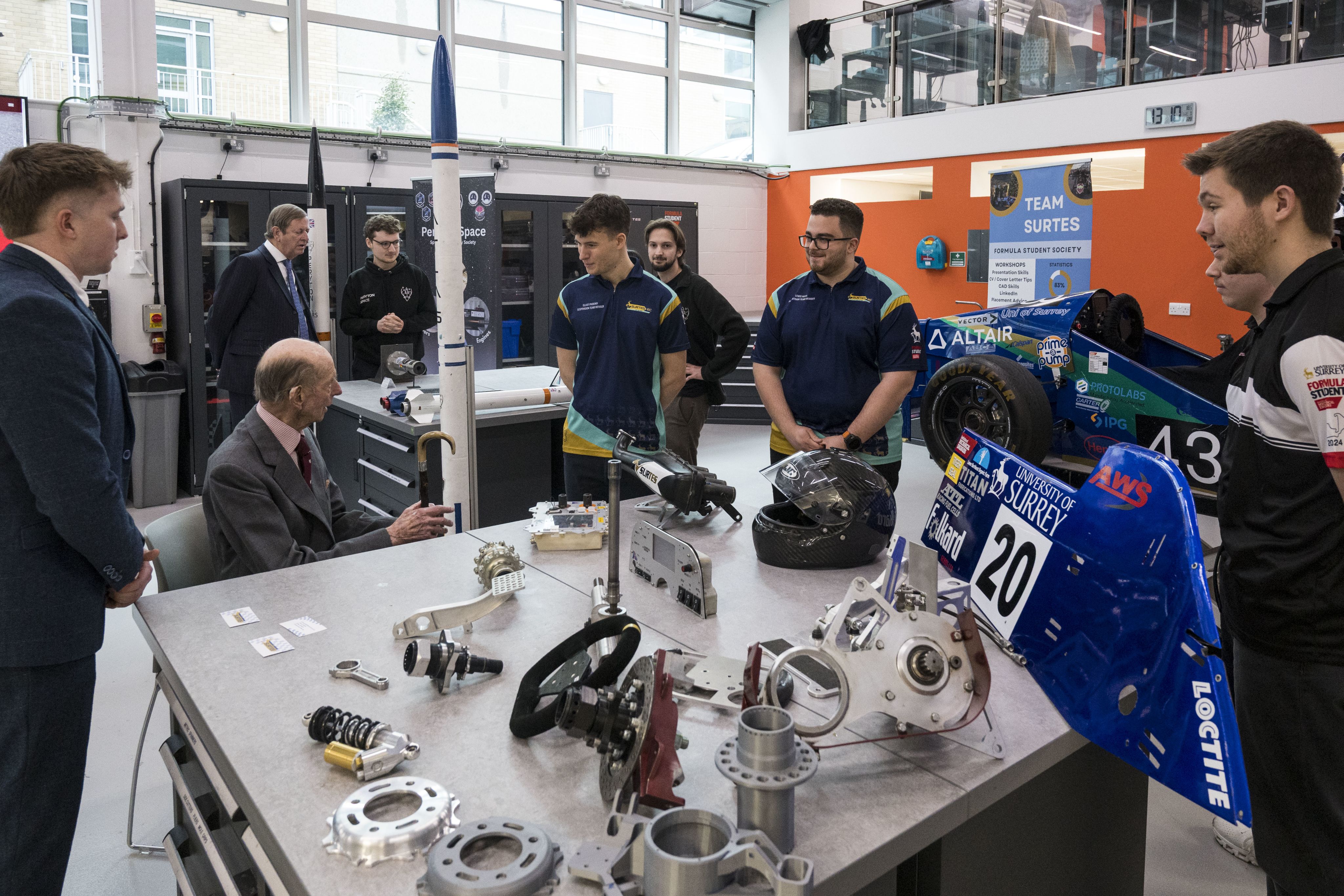 Students from the University’s Engineering Design Centre also had the opportunity to show His Royal Highness a range of projects, including rocket designs and Formula E racing cars.