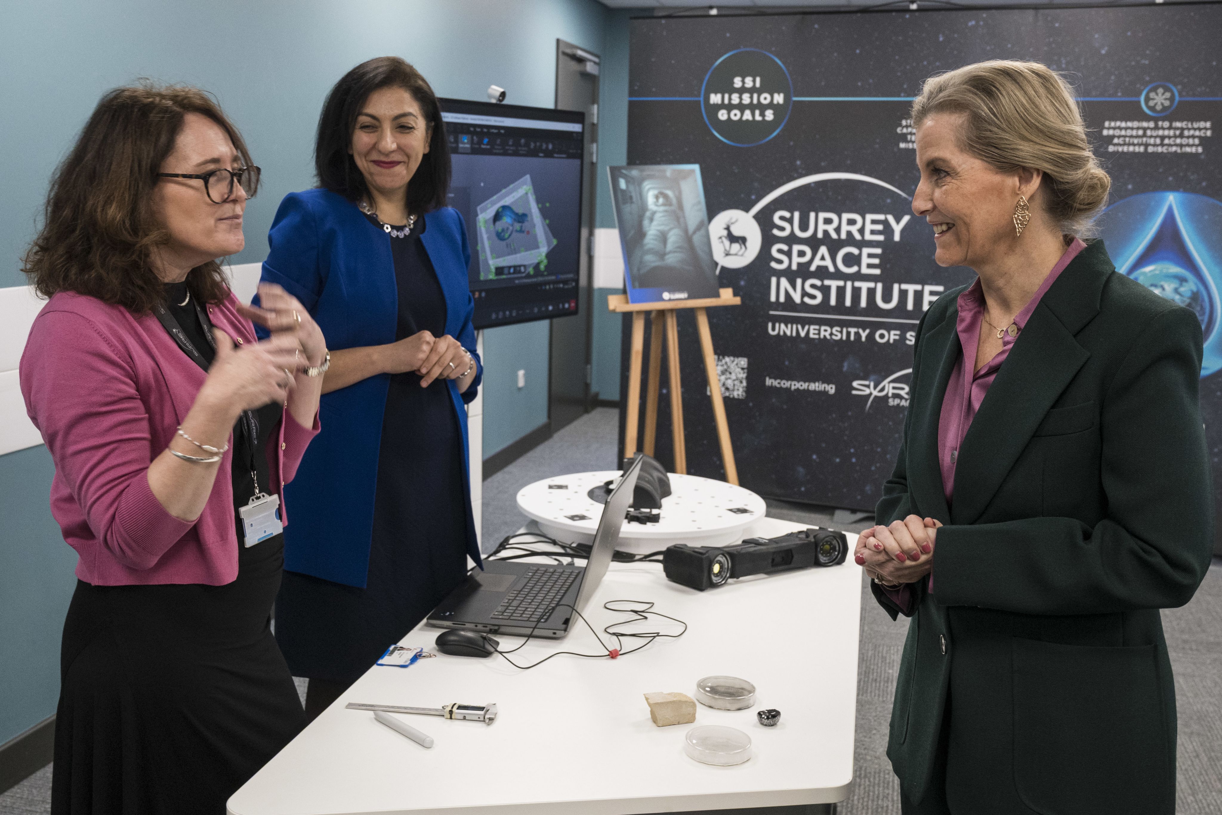HRH The Duchess of Edinburgh enjoys a demonstration of the tools needed to ensure the structural integrity of future lunar habitation pods with Dr Donya Hajializadeh