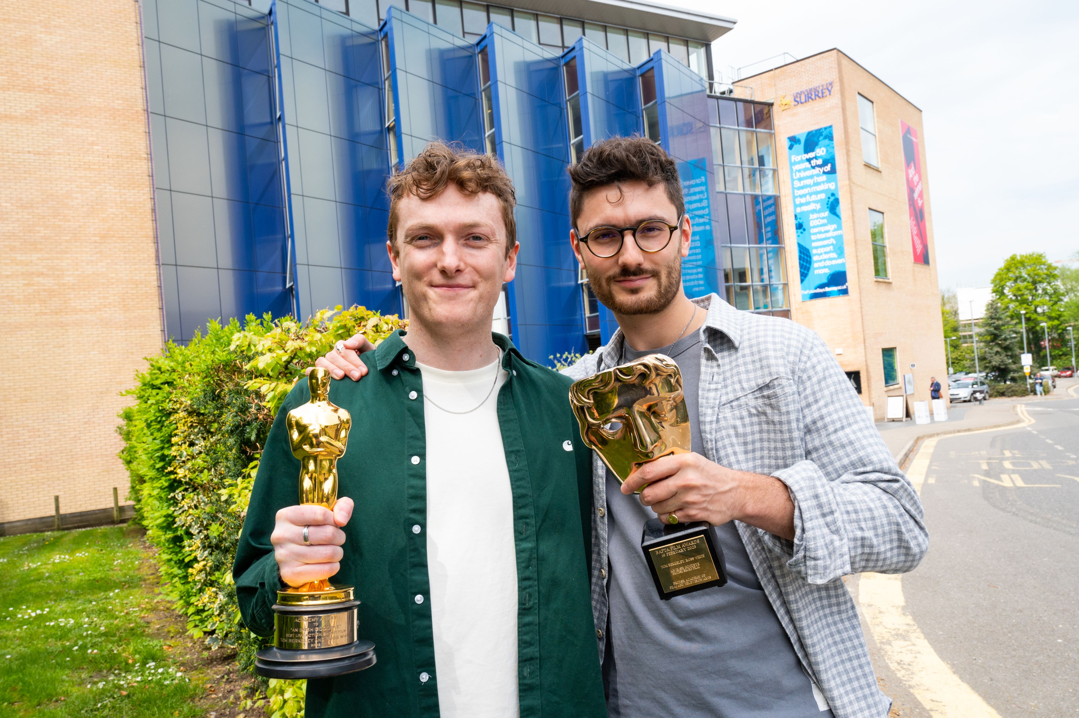 Ross White (left) and Tom Berkeley graduated from Guildford School of Acting (GSA) in 2017. Their first short film, Roy, was long-listed for a BAFTA. Their second, An Irish Goodbye, won an IFTA, a BAFTA and an Oscar in 2023. The duo are also our Young Achievers of the Year in the Vice-Chancellor’s Alumni Awards.